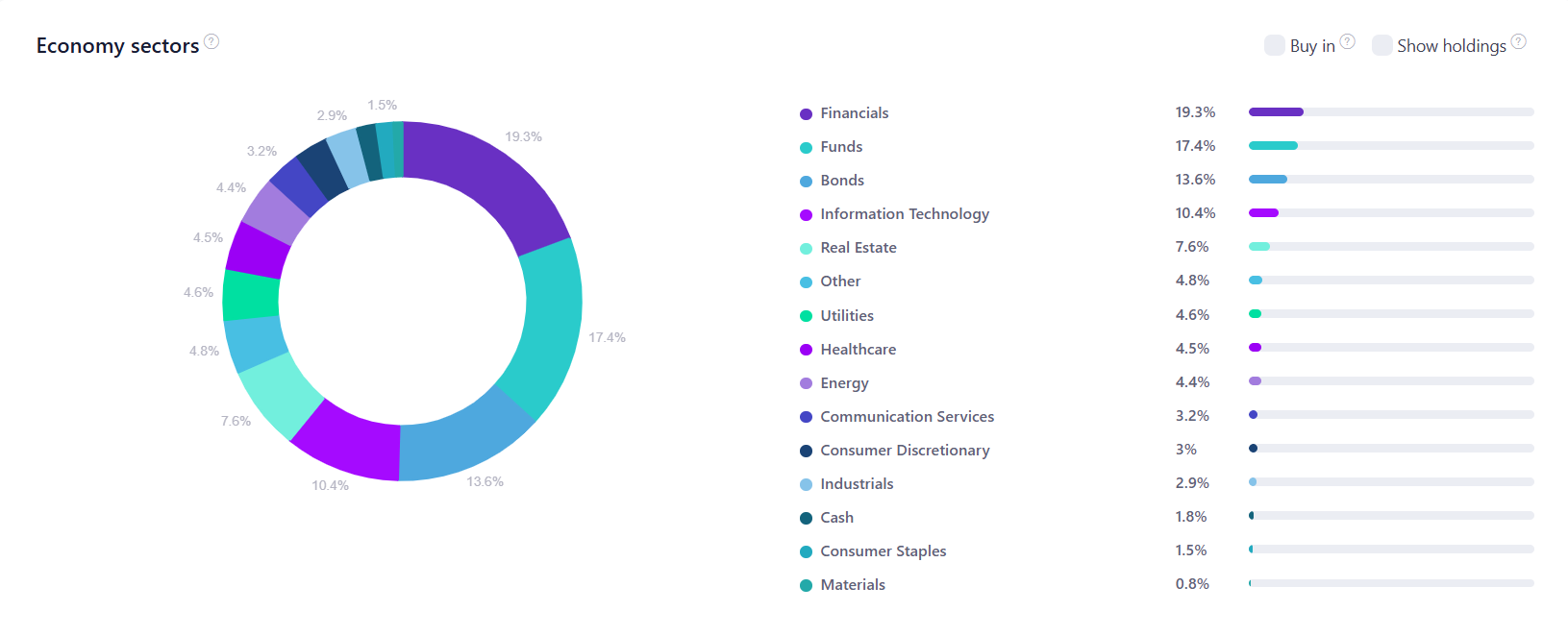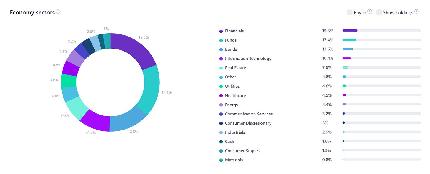 Here is a view of my portfolio allocated across various economic sectors.